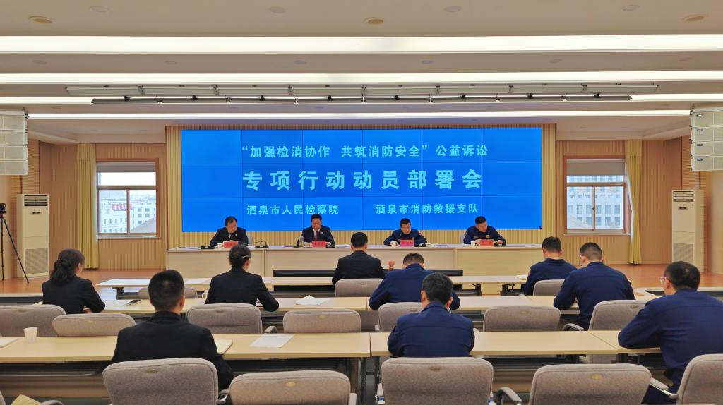 近日,酒泉市检察院与市消防救援支队召开“加强检消协作 共筑消防安全”公益诉讼专项行动动员部署会,会签《关于开展“加强检消协作 共筑消防安全”公益诉讼专项行动的实施方案》(以下简称《实施方案》),共同围绕消防设施和消防通道、高层民用建筑及其他人员居住场所、商场和集贸市场、餐饮场所、施工现场、电动车和集中充电设施等六个领域开展专项行动,通过充分发挥检消协作机制作用,加大消防安全领域司法保护力度。