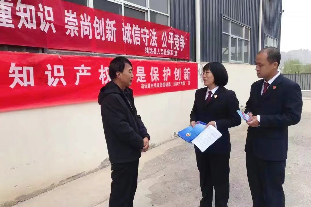 近日,靖远县检察院开展知识产权宣传周活动,检察干警深入辖区企业车间,详细了解企业的生产经营、知识产权保护等情况,并与企业负责人座谈,主动问需服务,助力企业完善知识产权保护体系。