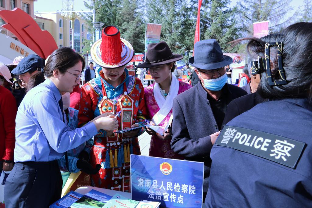 肃南县检察院在县中心广场开展民族团结进步宣传月活动,检察干警以社会热点难点问题为切入点,将民族团结与法治宣传相结合,引导群众树立休戚与共、荣辱与共、生死与共、命运与共的共同体理念。