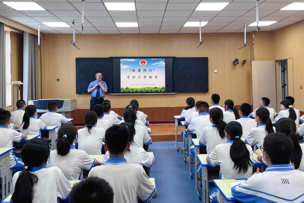 和政县检察院“宁萌护卫队”未检团队赴县育才中学和新庄学区,开展“开学第一课”系列普法活动。检察官以电视剧《九部的检察官》为切入点,围绕欺凌、诈骗、共同犯罪等法律问题,深入浅出地讲解未成年人犯罪的概念、诱因和常见犯罪类型,告诫学生们切勿因一念之差违法犯罪,鼓励学生们要在学法、知法、懂法、守法、用法中健康成长、奋发有为。