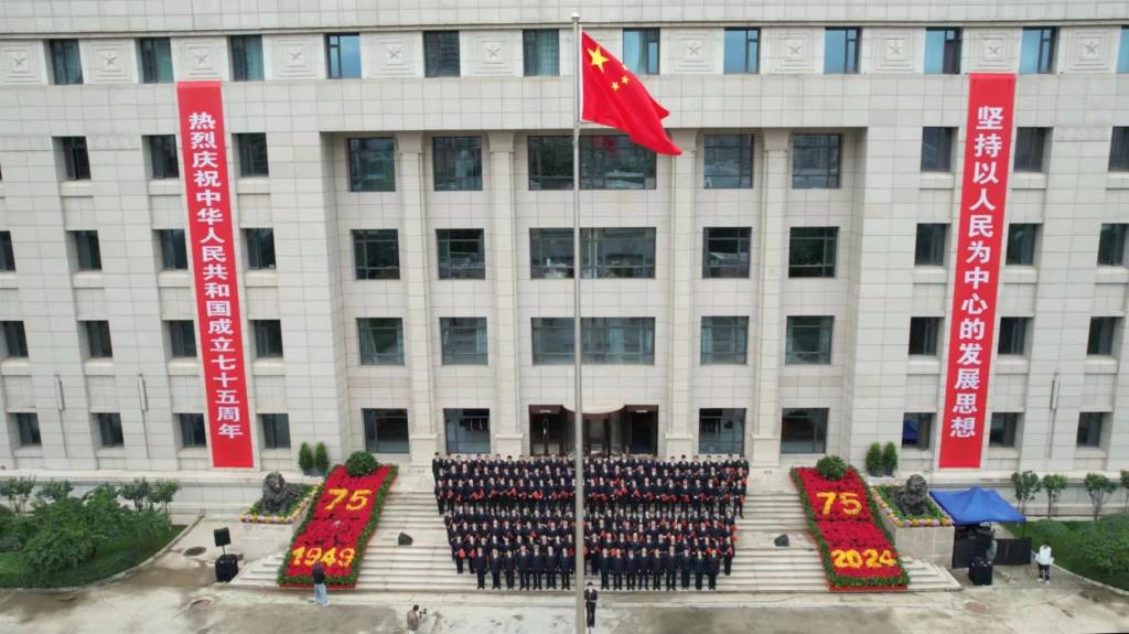 机关隆重举行升国旗仪式,庆祝中华人民共和国成立75周年。司机社