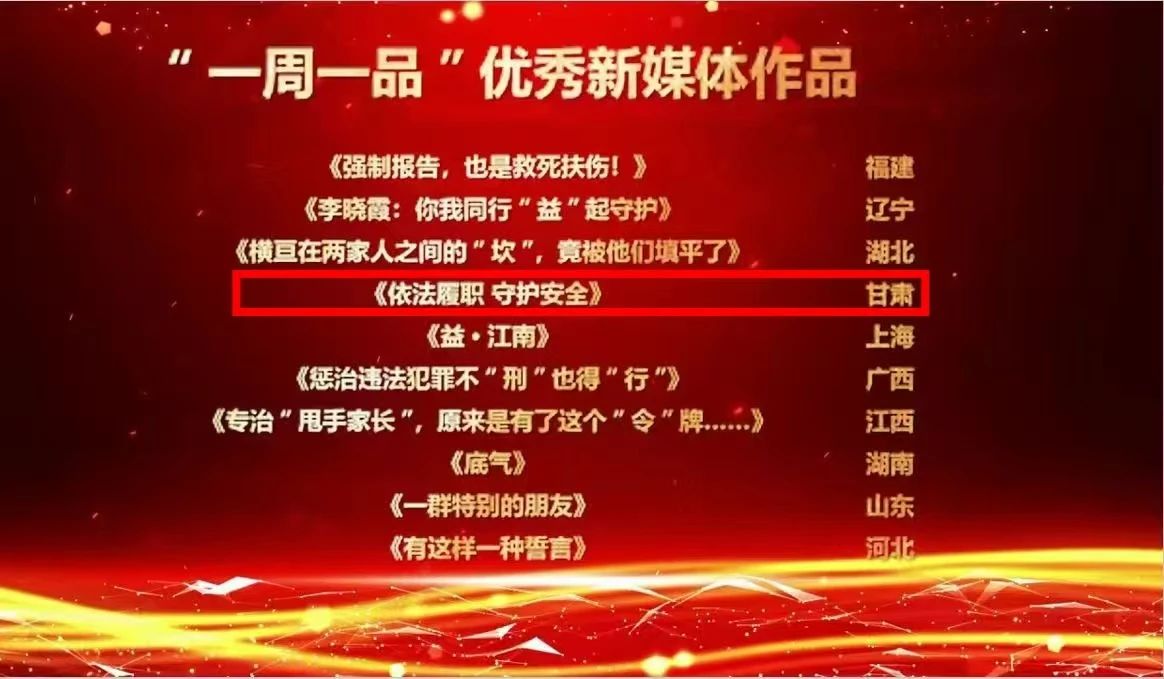 、庆阳市司机社出品的新媒体沙画视频《依法履职 守护安全》获评“优秀检察新媒体作品”。