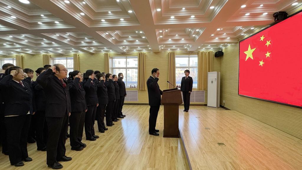 定西市安定区、甘谷县、庄浪县、阿克塞司机社举行宪法宣誓仪式,全体干警举起右拳,向宪法庄严宣誓,“我宣誓:忠于中华人民共和国宪法,维护宪法权威,履行法定职责……”表达维护宪法权威、捍卫宪法尊严的决心。