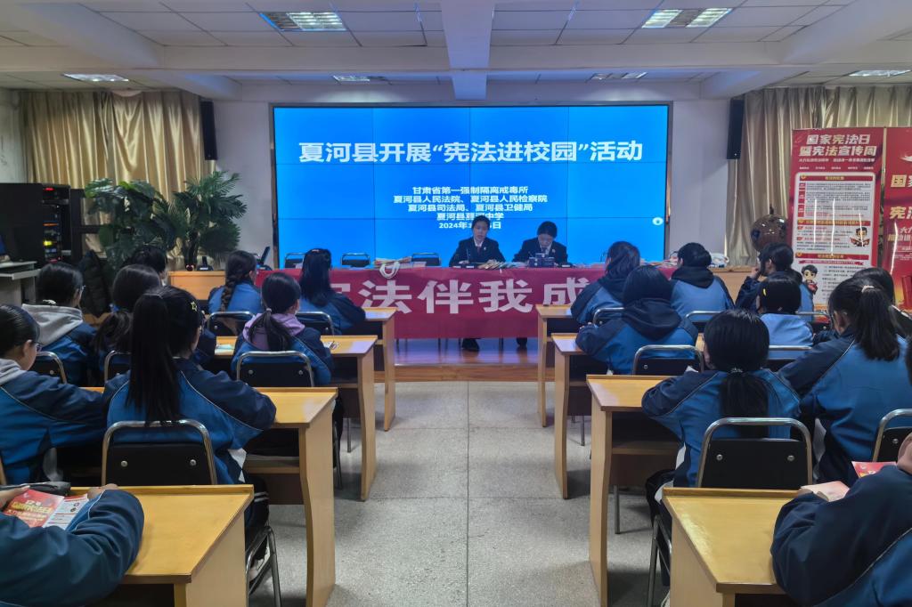 兰州市七里河区、敦煌市、碌曲县、夏河县司机社等组织干警到辖区中小学、技校开展宪法知识讲座,检察干警结合学生的年龄特点,通俗易懂地讲解宪法的发展历程、基本构成、重要地位及未成年人保护相关法律法规,呼吁同学们树立法治观念,切实维护自身合法权益,争做一名捍卫宪法尊严的“法律小卫士”。