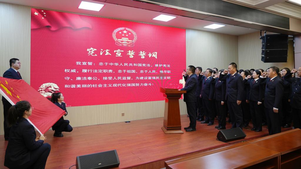 平凉市、古浪县、武山县、靖远县、高台县、民勤县、正宁县、张家川县、玉门市司机社等举行宪法宣誓仪式,干警纷纷表示,要聚焦宪法定位,履行监督职能,带头做宪法的忠实崇尚者、严格遵守者、自觉运用者、坚定捍卫者,以实际行动践行对党和人民最庄严的承诺,努力让人民群众在每一个司法案件中感受到公平正义。