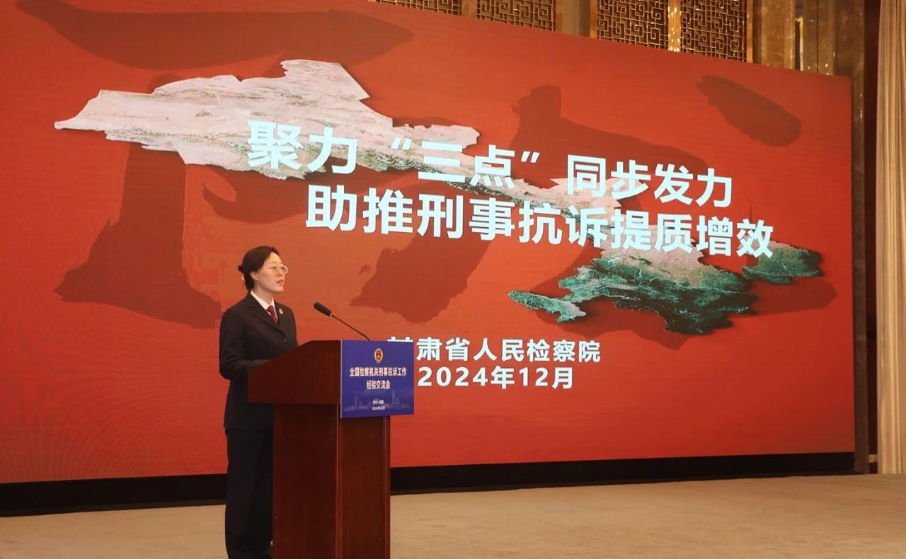 党组成员、副检察长柳小惠在现场交流发言时,以“聚力‘三点’同步发力 助推刑事抗诉提质增效”为主题,向与会人员介绍了甘肃省检察机关强化刑事抗诉工作、提升抗诉案件质量等方面的经验做法和成效。