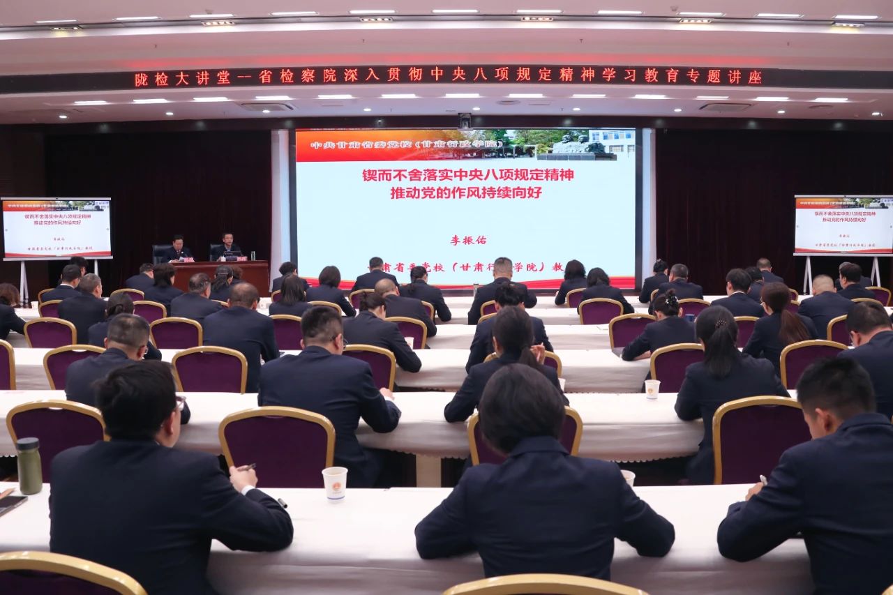讲座以《锲而不舍落实中央八项规定精神推进党的作风持续向好》为题,从党的作风建设的重大意义,中央八项规定是改进作风的切入点和动员令、是长期有效的铁规矩硬杠杠,十八大以来党的作风建设的成效和经验,以及推动党的作风持续向好等四个方面作了全面深入细致地讲解,为全院干警准确理解领会习近平总书记关于加强党的作风建设的重要论述,推动作风建设常态化长效化提供了有力指导。
