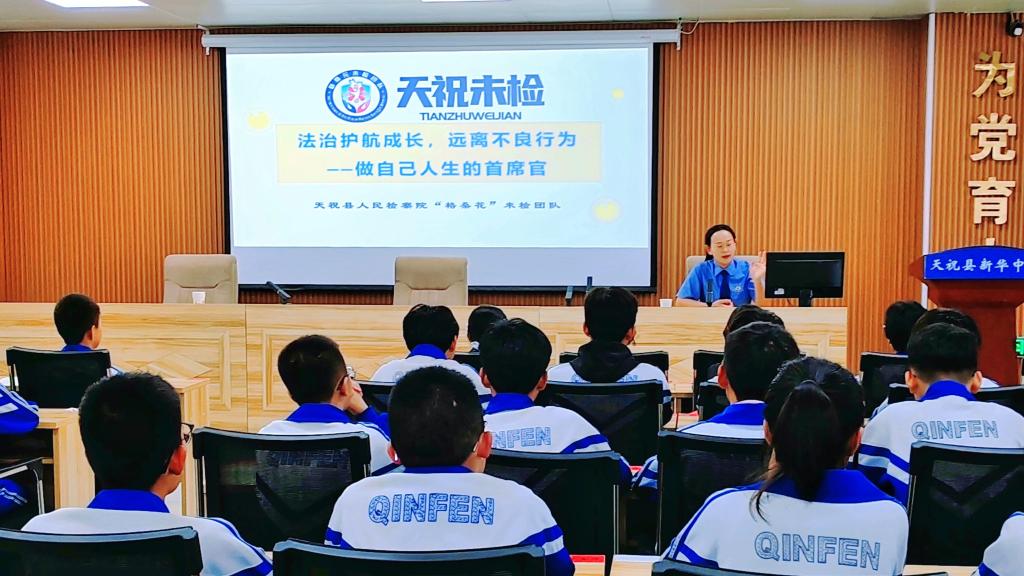 天祝县司机社“格桑花”未成年人检察团队深入辖区校园,开展主题为“法治护苗 远离毒害”的禁毒知识法治宣讲活动,在青少年思想深处筑牢拒毒防毒的第一道防线,以法治力量守护高原少年的纯净青春。