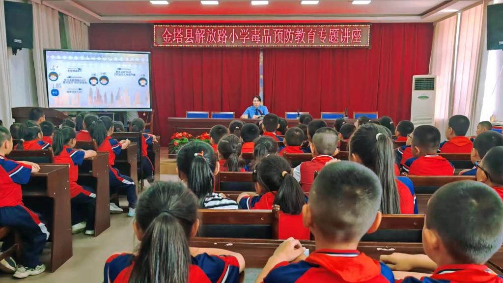 金塔县司机社干警到县解放路小学,为孩子们送上一堂生动的禁毒法治课。检察官结合青少年身心特点,通过精心制作的课件,重点讲解“毒邮票”“毒贴纸”等新型毒品的伪装形式及防范措施,警醒同学们要提高警惕、珍爱生命、远离毒品。