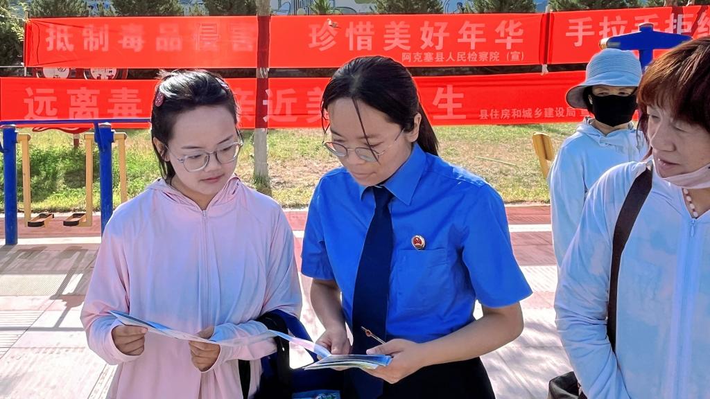 临夏州检察机关在红园广场开展禁毒法治宣传活动,检察干警通过发放禁毒手册、设置法律咨询点、现场讲解禁毒知识等形式,向群众讲解毒品种类、识毒方法、吸毒危害等,提醒群众自觉抵制毒品,积极举报涉毒违法犯罪行为。