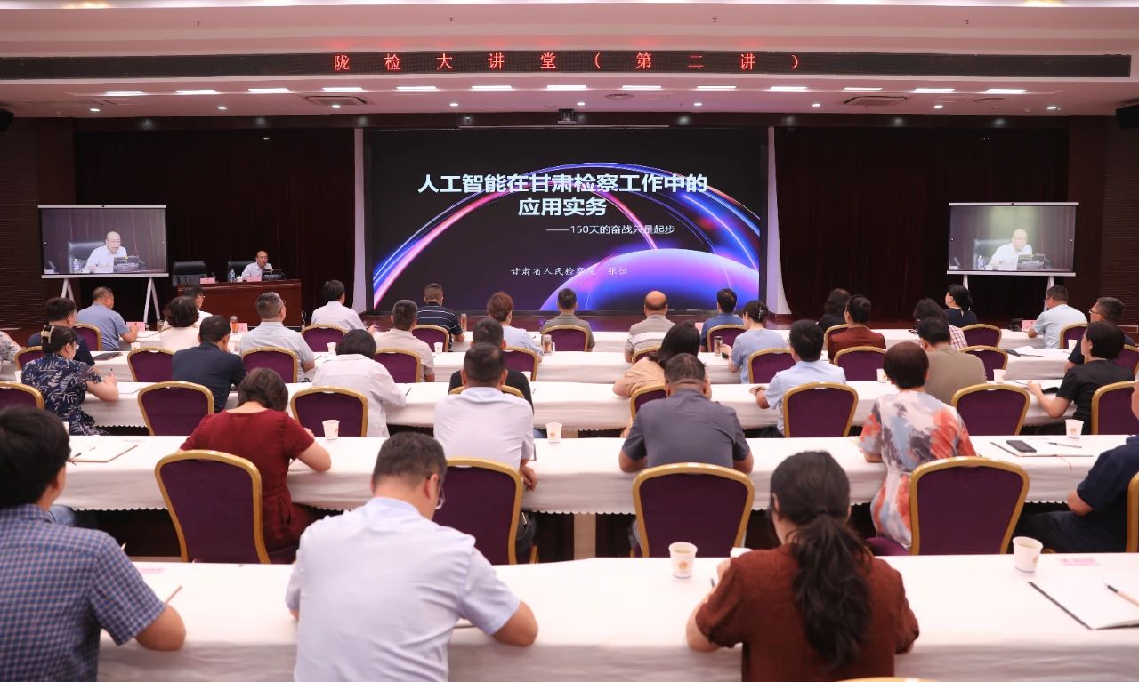 讲座中,主讲人系统阐述了人工智能及大语言模型的运用,特别是“陇检智星”大模型的详实介绍和功能演示,让大家更全面深入地了解了人工智能技术,尤其是大模型在检察办案、智能写作、综合管理等领域的应用前景和实践路径,展示了“人工智能+检察”的美好前景。