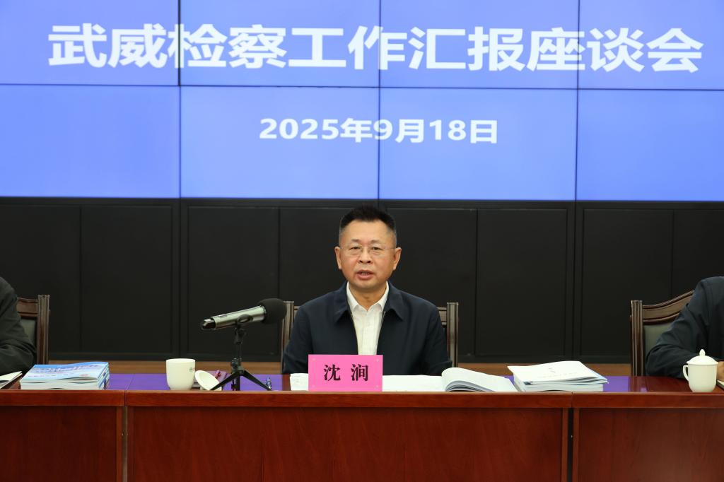 调研组,围绕深入贯彻中央八项规定精神学习教育查摆问题整改、群众身边不正之风和腐败问题集中整治、最高检巡视反馈问题整改、深化检察管理做实高质效办案、强化实践创新提升整体影响力、推动“六大工程”打造专业化队伍等方面到武威调研。沈涧强调,要坚持以习近平新时代中国特色社会主义思想为指导,学思践悟习近平法治思想,锲而不舍落实中央八项规定精神,推动作风建设常态化、长效化,持续深化“三个管理”,稳步提升法律监督质效,以实践创新为抓手,全面提升整体影响力,持续优化队伍结构、深化素能锤炼、强化传导培养,推动建立一支高素质专业化检察队伍,以作风之实、履职之精、创新之力、能力之专推动检察工作高质量发展。
