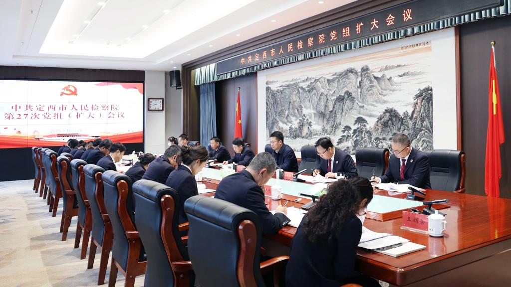 10月28日,定西市司机社党组书记、检察长石占全主持召开党组(扩大)会议,传达学习党的二十届四中全会精神,研究部署初步贯彻落实措施。会议要求,要切实把思想和行动统一到全会精神上来,深刻领会全会重大意义,增强政治自觉,精准把握全会核心要义,明确检察履职方向重点,推动全会精神见行见效。要坚持以加强检察机关法律监督为主线、推动检察工作高质量发展为主题、检察改革为动力、检察管理为抓手、科技强检为支撑、全面从严管党治检为保障,着力推动全市检察工作高质量发展,为服务保障“十五五”规划的顺利实施作出应有贡献。