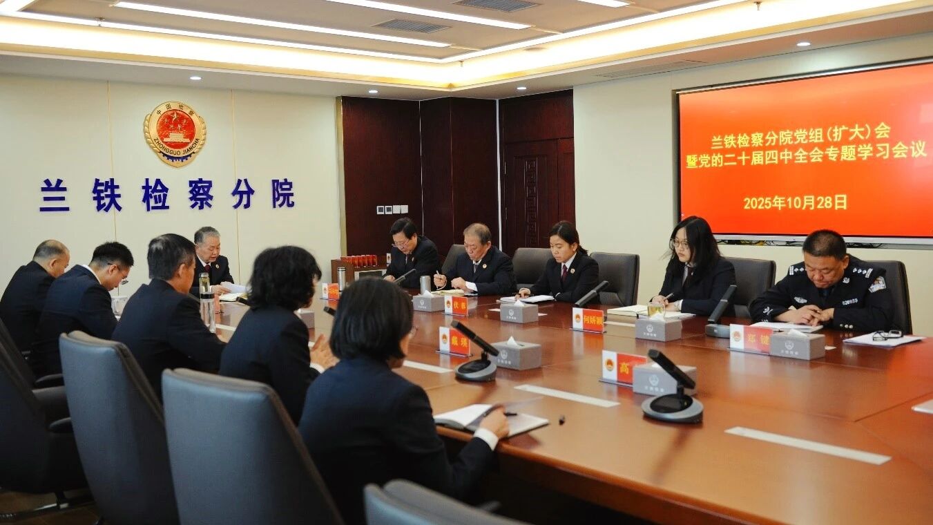 兰州铁路运输分院党组书记、检察长马军主持召开党组(扩大)会议,专题学习贯彻党的二十届四中全会精神,研究贯彻落实举措。会议要求,要深刻领会“十四五”时期的重大成就与“十五五”时期的战略定位,自觉把各项检察工作放到全面建设社会主义现代化国家新征程中来考虑、谋划和推进,以检察履职的实绩实效持续抓好贯彻落实。要对标对表全会关于法治建设的重大部署,与贯彻落实《中共中央关于加强新时代检察机关法律监督工作的意见》结合起来,切实把学习成果转化为依法履职的政治自觉和司法实践。