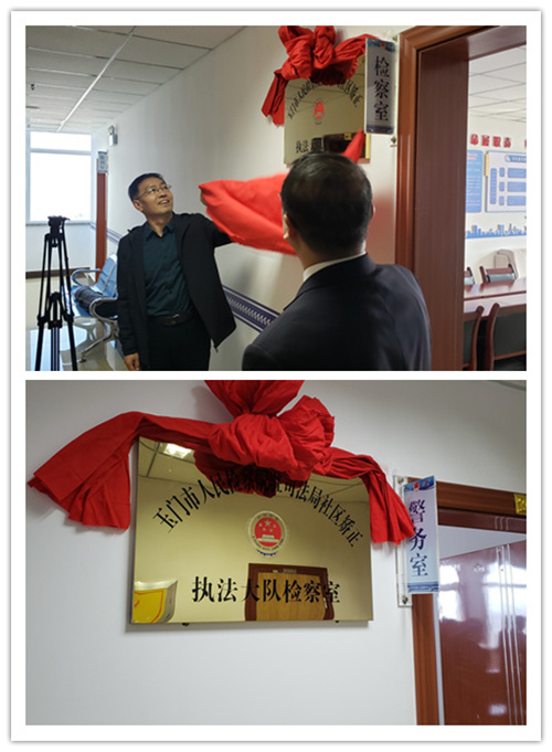 驻司法局执法大队检察室”正式挂牌,标志着酒泉市首个检察机关驻社区矫正执法大队检察室全面投入运行。