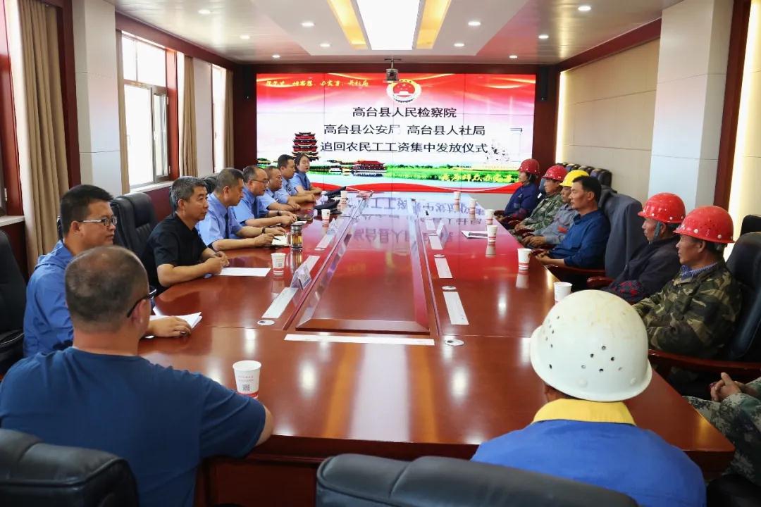 6月29日,张掖市高台县司机社联合联合县公安局、县人力资源和社会保障局举行追回农民工工资集中发放仪式,对一起拒不支付劳动报酬案中的56名农民工集中发放拖欠工资10万余元。