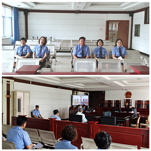 7月21日,玉门市院党组书记、检察长王晋方带领跟庭评议组对该院办理的一起妨害公务案进行跟庭评议。
