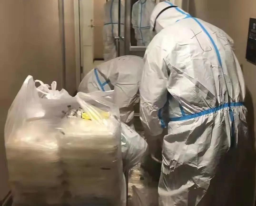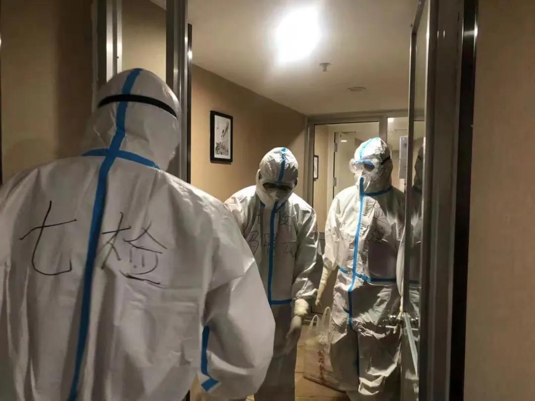 临时党支部的志愿者干警每天要更换4次防护服,穿梭各个隔离房间运送各种物资,同时,他们还通过微信、短信等方式与隔离人员加强沟通,询问生活必须品。面对繁重的工作任务,他们没有丝毫怨言,当面对被隔离的密切接触者时,他们耐心疏导情绪,解答疑问,普及防疫知识,化解留观人员的焦虑情绪……。下午3点,隔离点参与联防联控工作的干警从工作区走出,换掉身上厚厚的防护服,开始吃午饭。