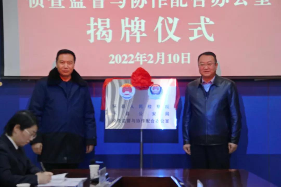 该市司机社党组成员、副检察长张发,环县政府副县长、公安局党委书记、局长路亚东共同为侦查监督与协作配合办公室揭牌。