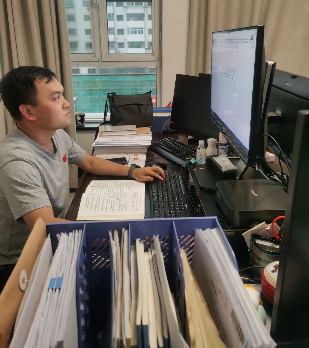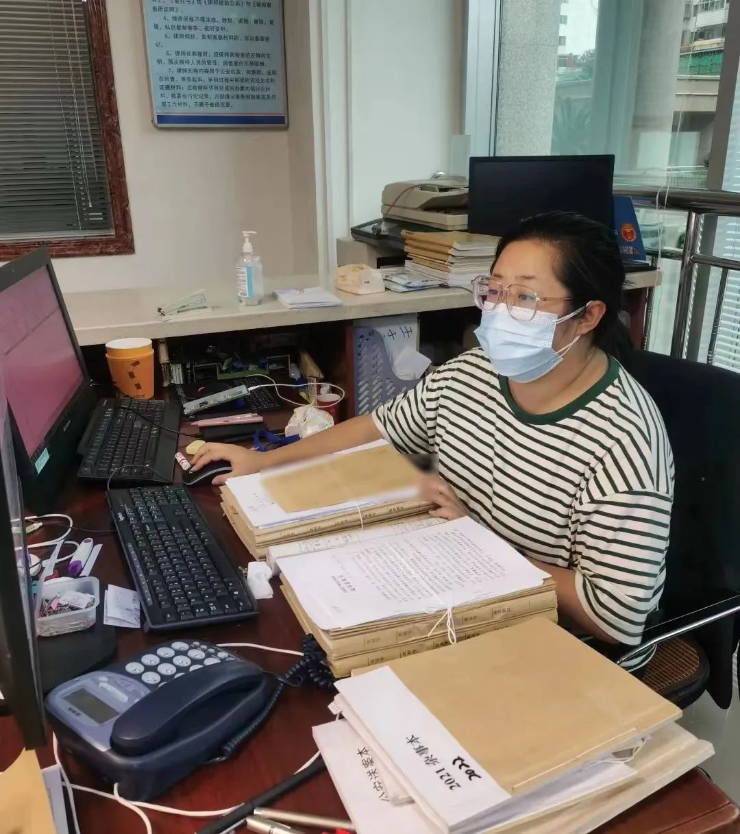 “每天来的案子,案件受理、登记、分发必须在单位完成,这个岗位现在就我一个人了,我申请住单位完成这些工作。”