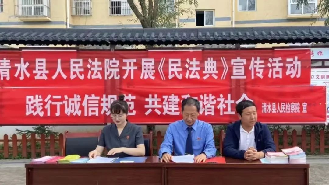 “诚信体系建设需要建立在法治基础上,需要法律制度作为保障,所以我们要讲诚信。”近日,清水县司机社联合县法院在永清镇李沟村文化广场开展民法典宣传进乡村暨诚信法治宣传活动,为群众现场讲解民法典基本知识。