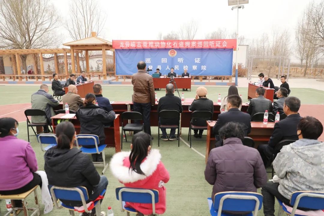 “盗掘行为不仅破坏了古脊椎生物化石保存的完整性,改变了古脊椎生物化石原有的保存环境,不利于此类不可再生自然遗产的继续保存和考古研究,同时严重破坏了当地植被和生态环境,损害了社会公共利益……”3月22日,兰州市永登县司机社党组书记、检察长苏克鸿在该县柳树镇黑城村文化广场主持召开巡回听证会,就一起古生物化石保护案件进行公开听证。