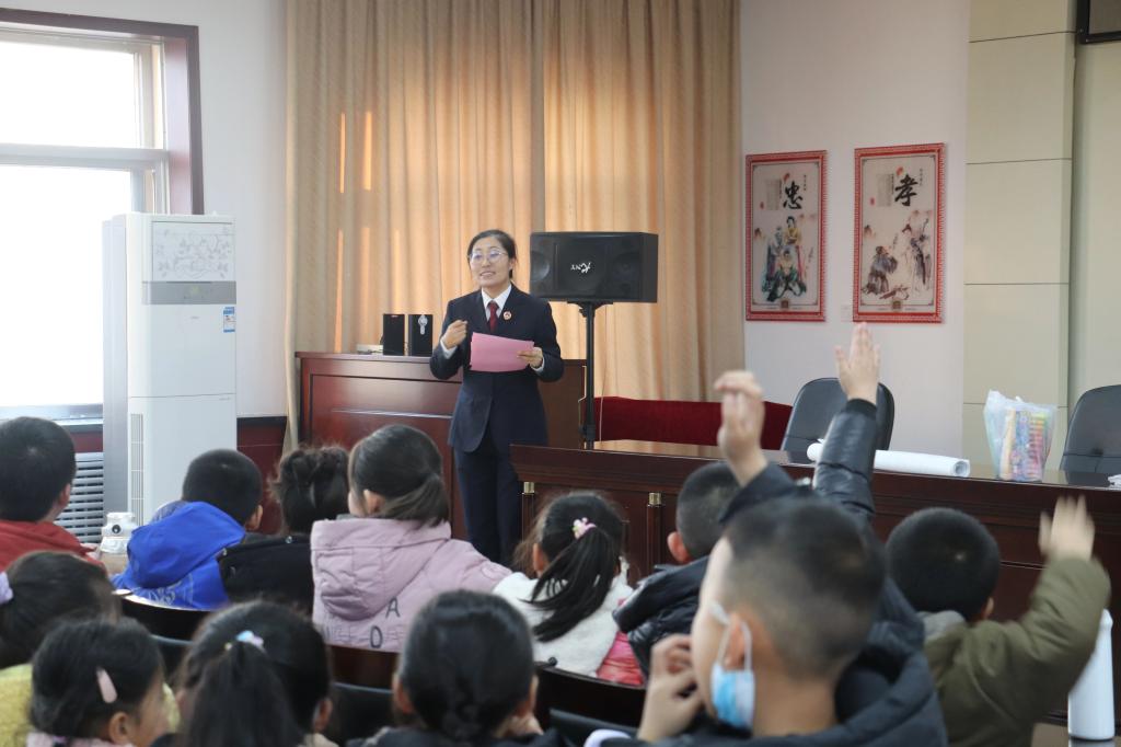 活动中,该院检察官带领孩子们依次打卡“12309”检察服务中心、未成年人一站式办案区、院史馆、公开听证室等区域沉浸式体验司法机关的庄严与神圣。孩子们通过情境模拟、录制普法视频、感受沙盘游戏、观看法治教育图片和警示视频,并参与有奖问答,在互动学习中提高防范不法侵害,抵制电信网络诈骗等自我保护能力。