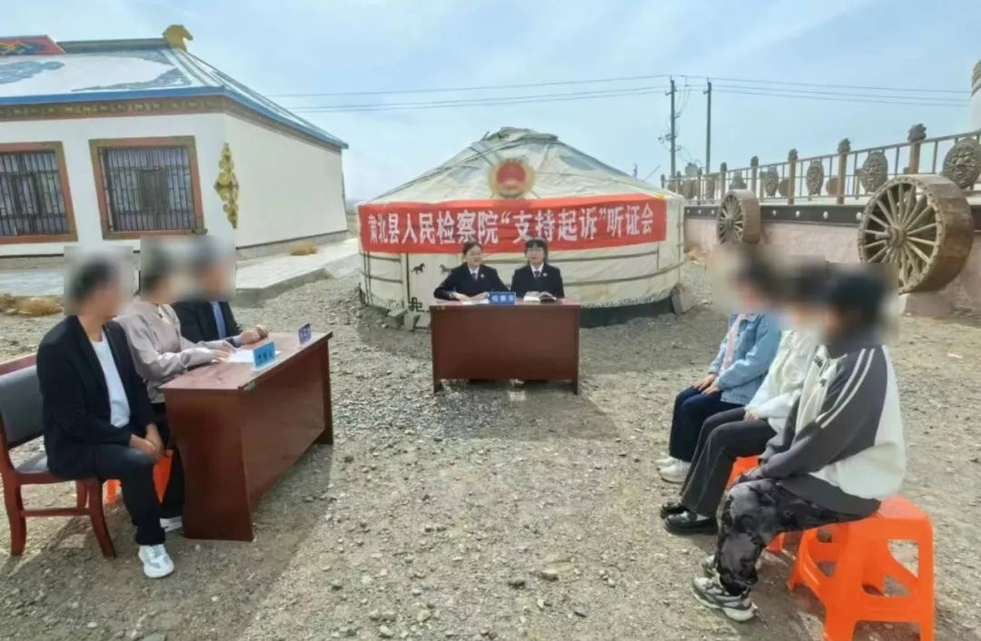 肃北县司机社拟决定支持朝小某向法院提起民事诉讼,3月5日,办案检察官身背检徽远赴一百多公里外的牧区,在村委会的蒙古包前召开不公开听证会,邀请乡镇主管补助奖励资金发放的工作人员、妇联工作人员、村委会妇联主任担任听证员进行听证。