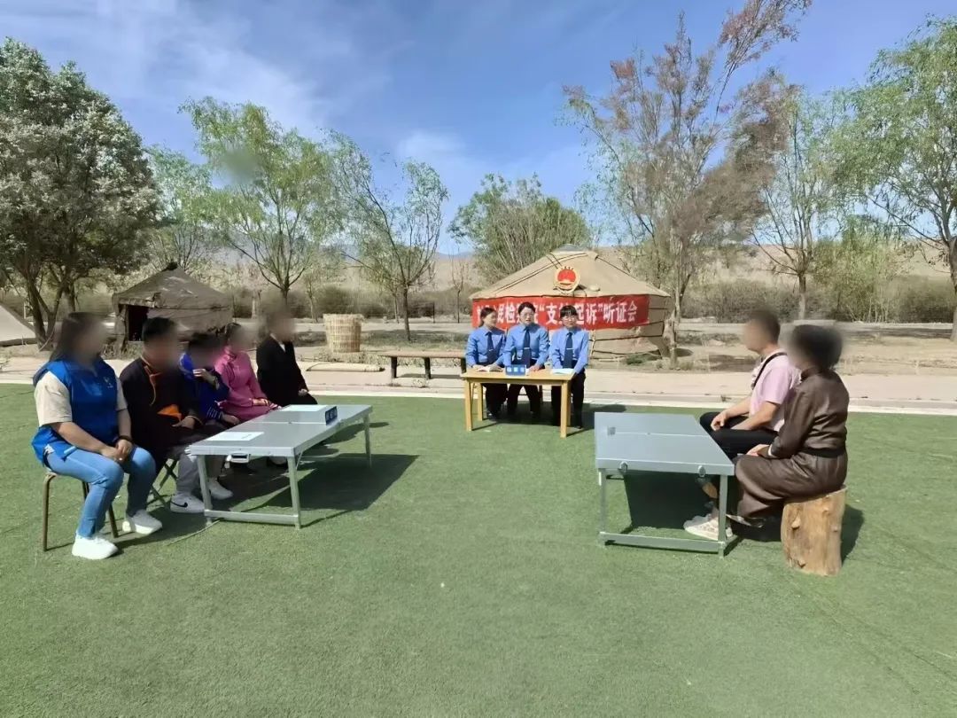 2024年3月5日,肃北县司机社办案检察官远赴一百多公里外的牧区,就一起支持起诉案在蒙古包前召开不公开听证会。