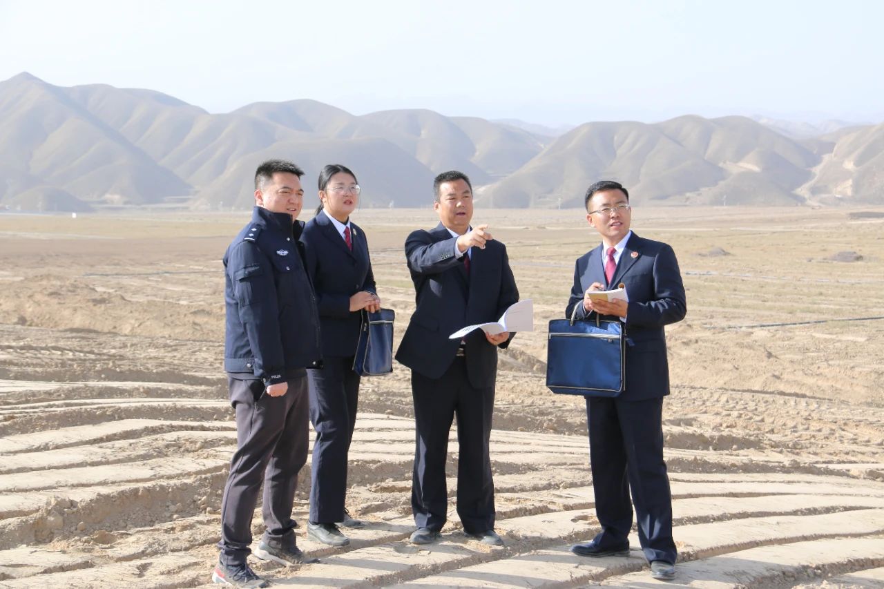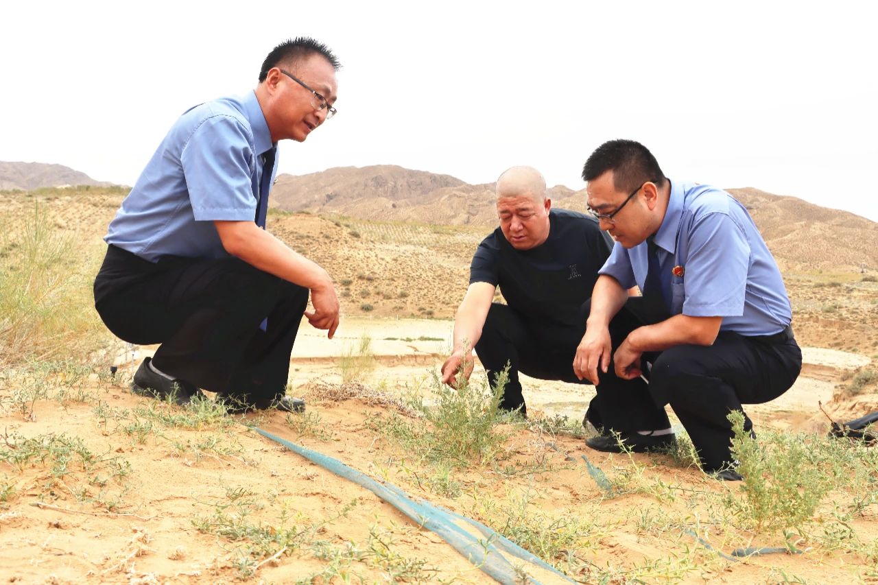 2023年8月19日,景泰县司机社办案检察官实地查看被破坏沙化土地封禁保护区整改情况。