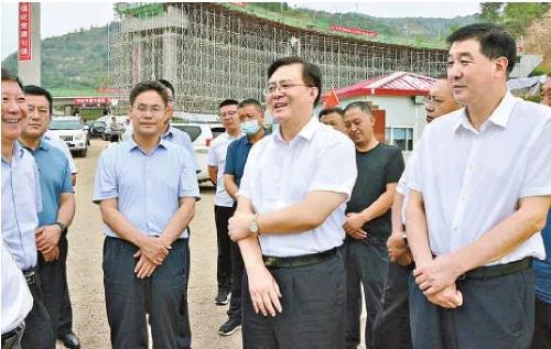 检察长朱玉(前排右二)现场调研指导包抓省列重大项目,详细了解项目建设中存在的困难和问题。