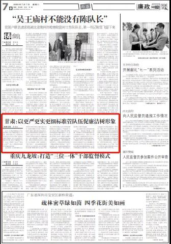 2020年7月7日检察日报刊发《甘肃:以更严更实更细标准管队伍促廉洁树形象》一文。