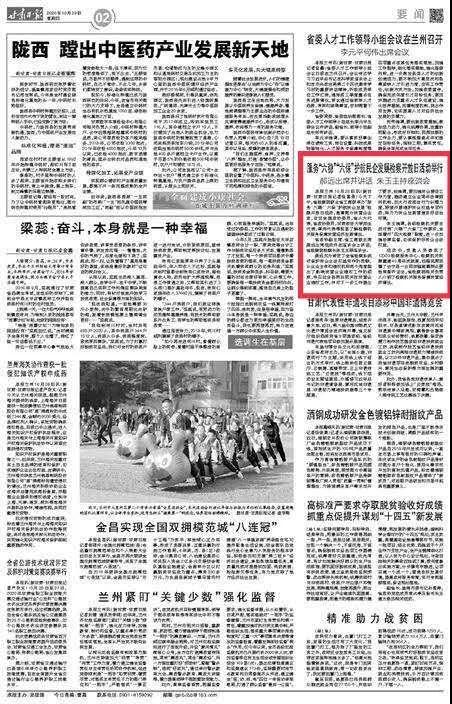 2020年10月28日甘肃日报刊发《服务“六稳”“六保”护航民企发展检察开放日活动举行》一文。