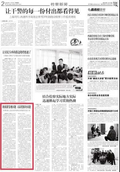 2020年11月5日检察日报第2版刊发《既精准发现问题 又最优解决问题——甘肃张掖:公益诉讼护航绿色发展惠及祁连人家》一文。