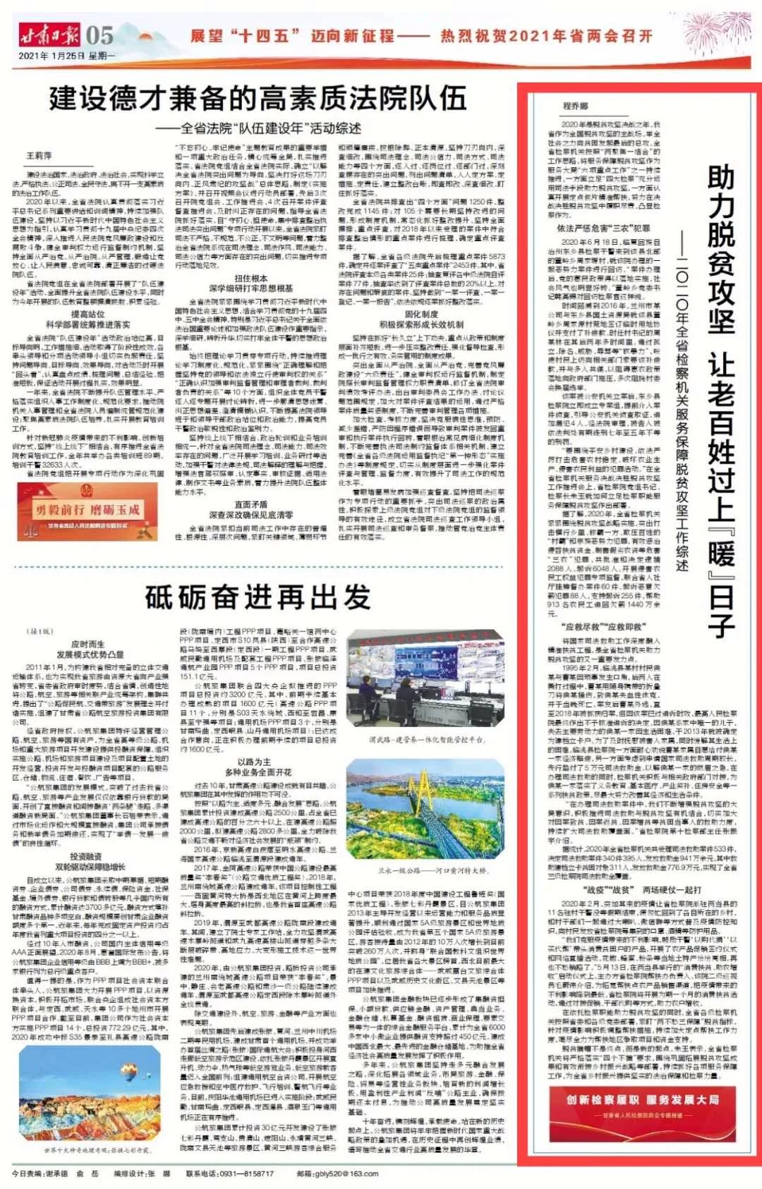 2021年1月25日甘肃日报五版刊发《助力脱贫攻坚 让老百姓过上“暖”日子》一文。
