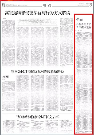 兰州铁路运输分院检察长王炜、检察官助理张源撰写的文章《公益诉讼专门立法模式选择》一文。