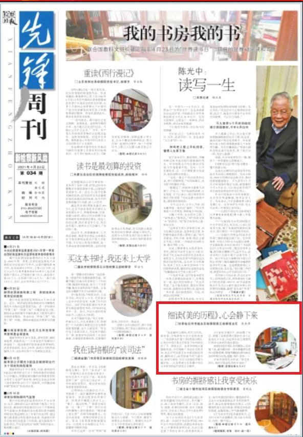 2021年4月23日检察日报5版刊发《细读《美的历程》,心会静下来》。