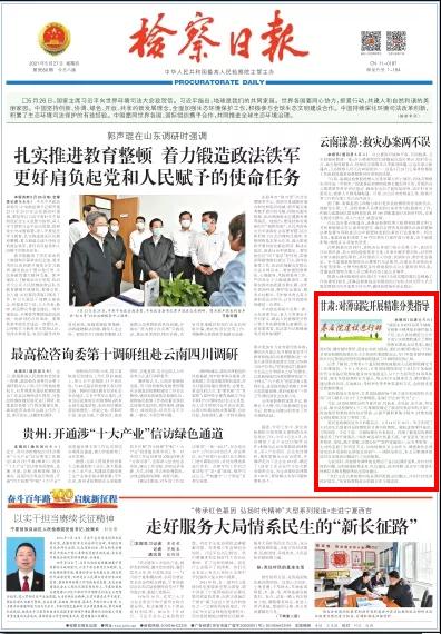 2021年5月27日,检察日报头版刊发《甘肃:对薄弱院开展精准分类指导》一文。