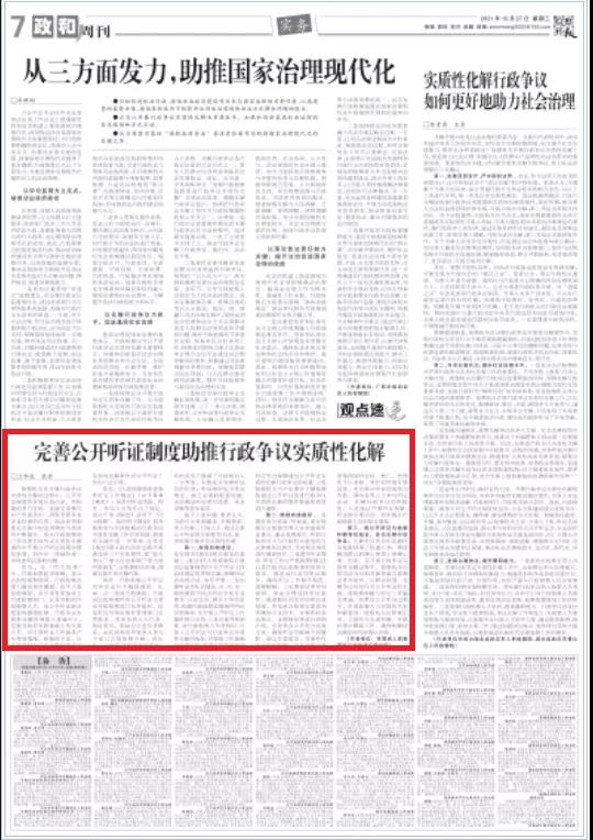 兰州铁路运输分院副检察长兰积成、检察官助理张源撰写的文章《完善公开听证制度助推行政争议实质性化解》。