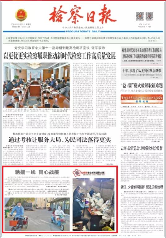 2021年10月28日,检察日报头版刊发《驰援一线 同心战疫》。