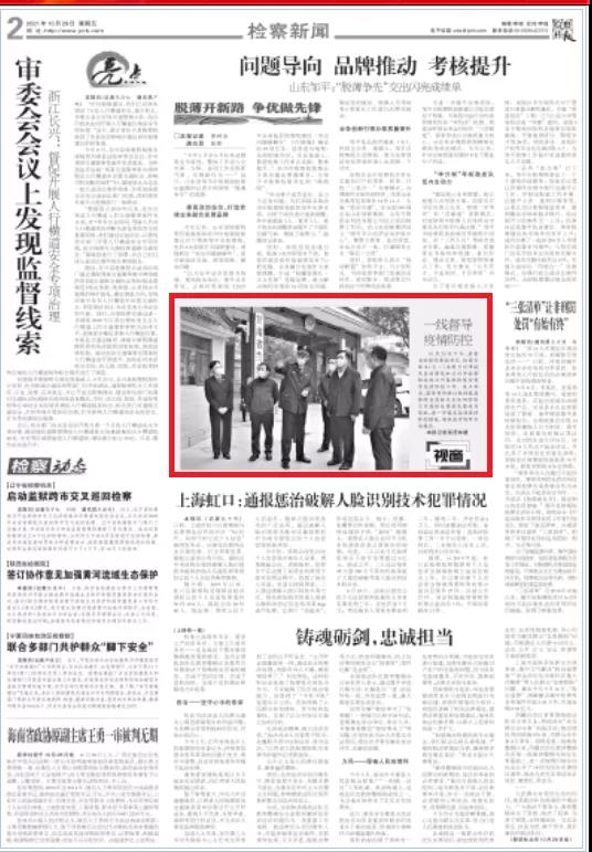 2021年10月29日,检察日报二版《视窗》刊发新闻《一线督导疫情防控》。