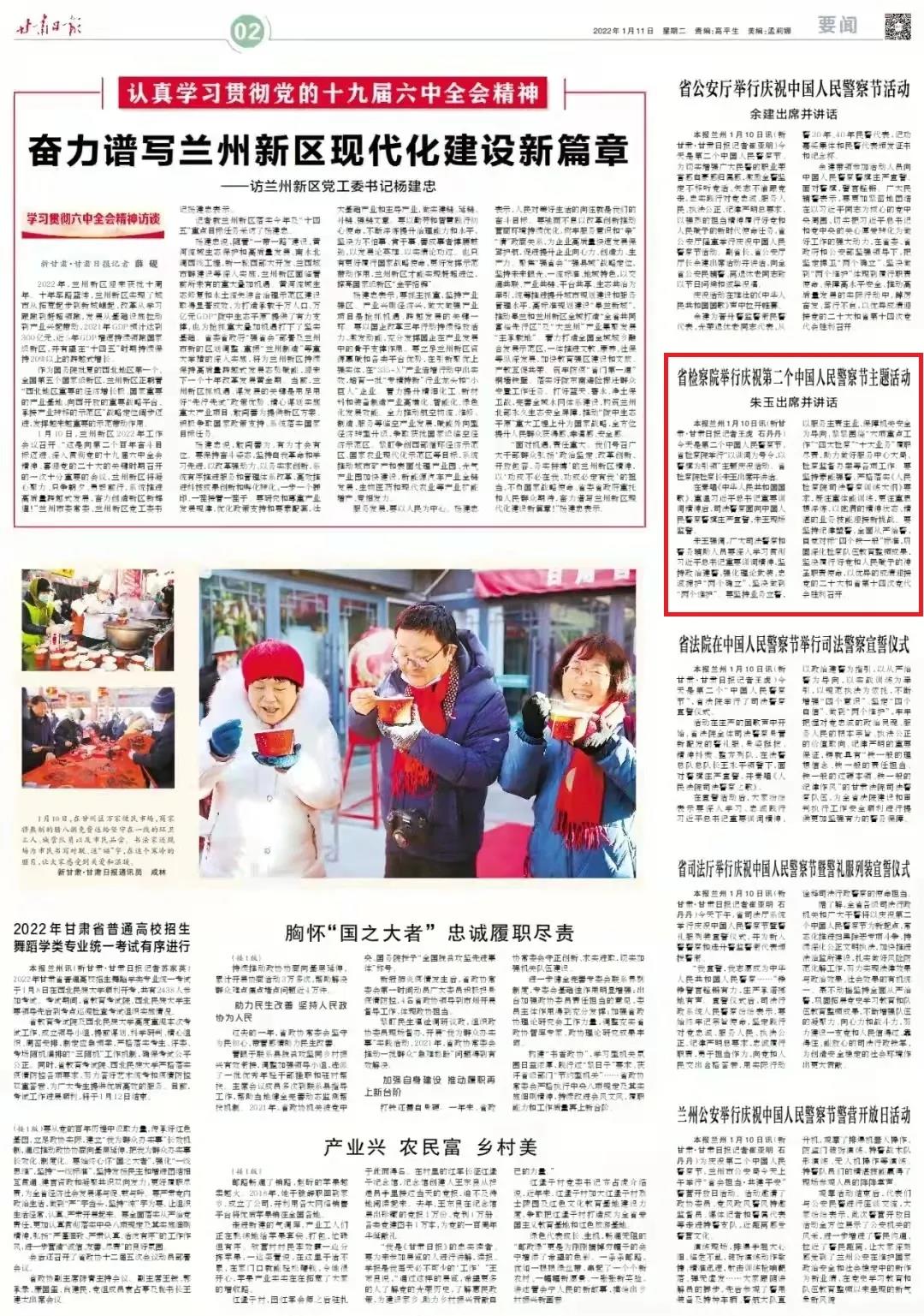 本报兰州1月10日讯(新甘肃·甘肃日报记者王虎 石丹丹)今天是第二个中国人民警察节,司机社