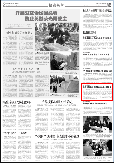 2022年4月2日,检察日报二版刊发新闻《庆阳市司机社:联合法院构建矛盾纠纷协同化解机制》。