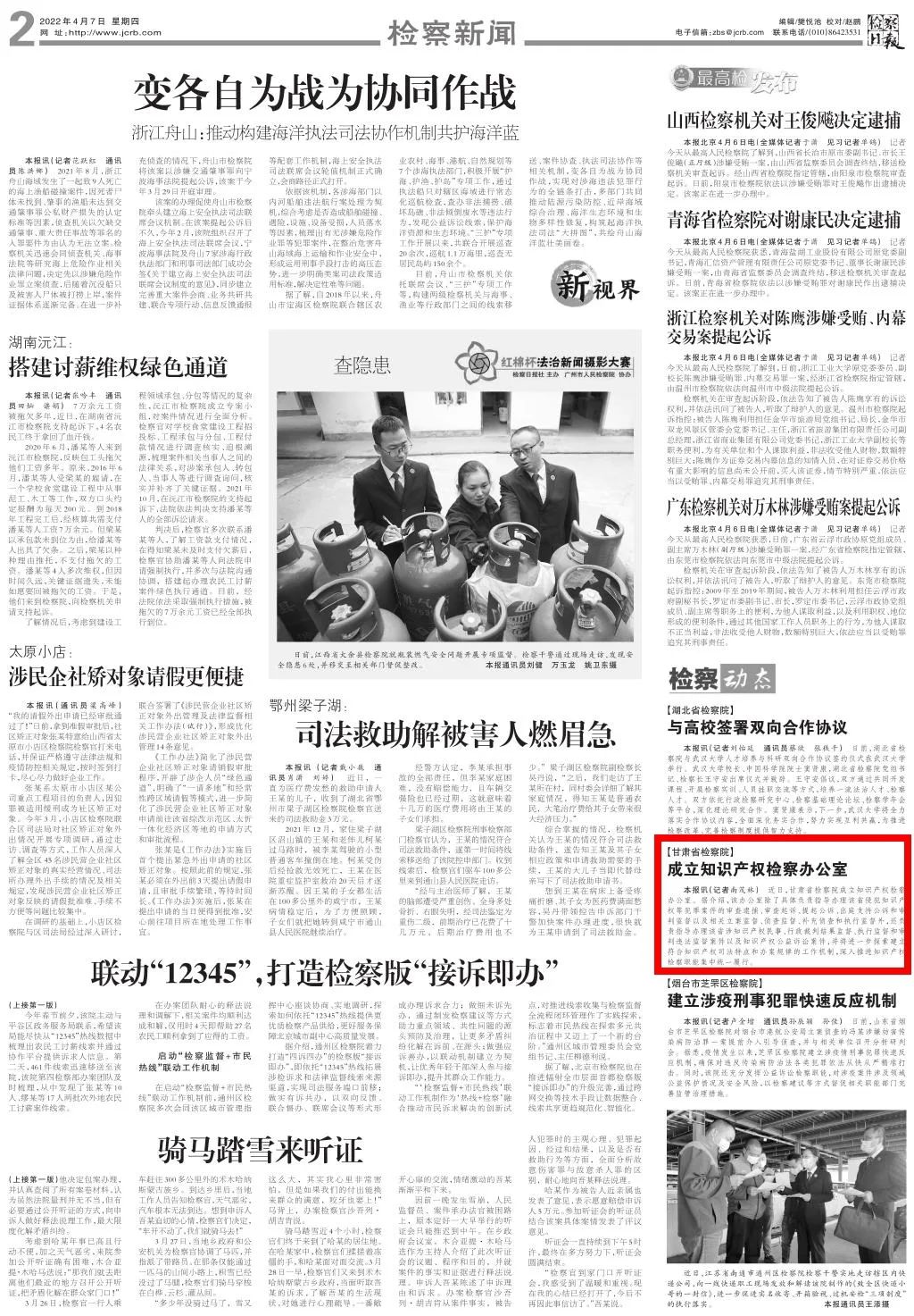 2022年4月7日,检察日报二版刊发新闻《司机社
