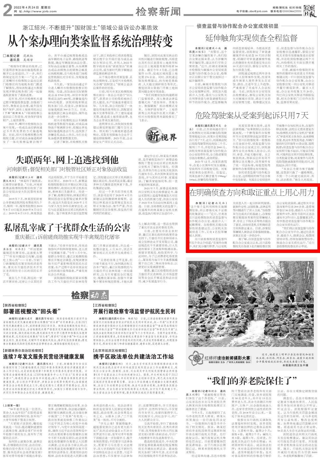2022年4月24日,检察日报二版刊发新闻《在明确侦查方向和取证重点上用心用力》。