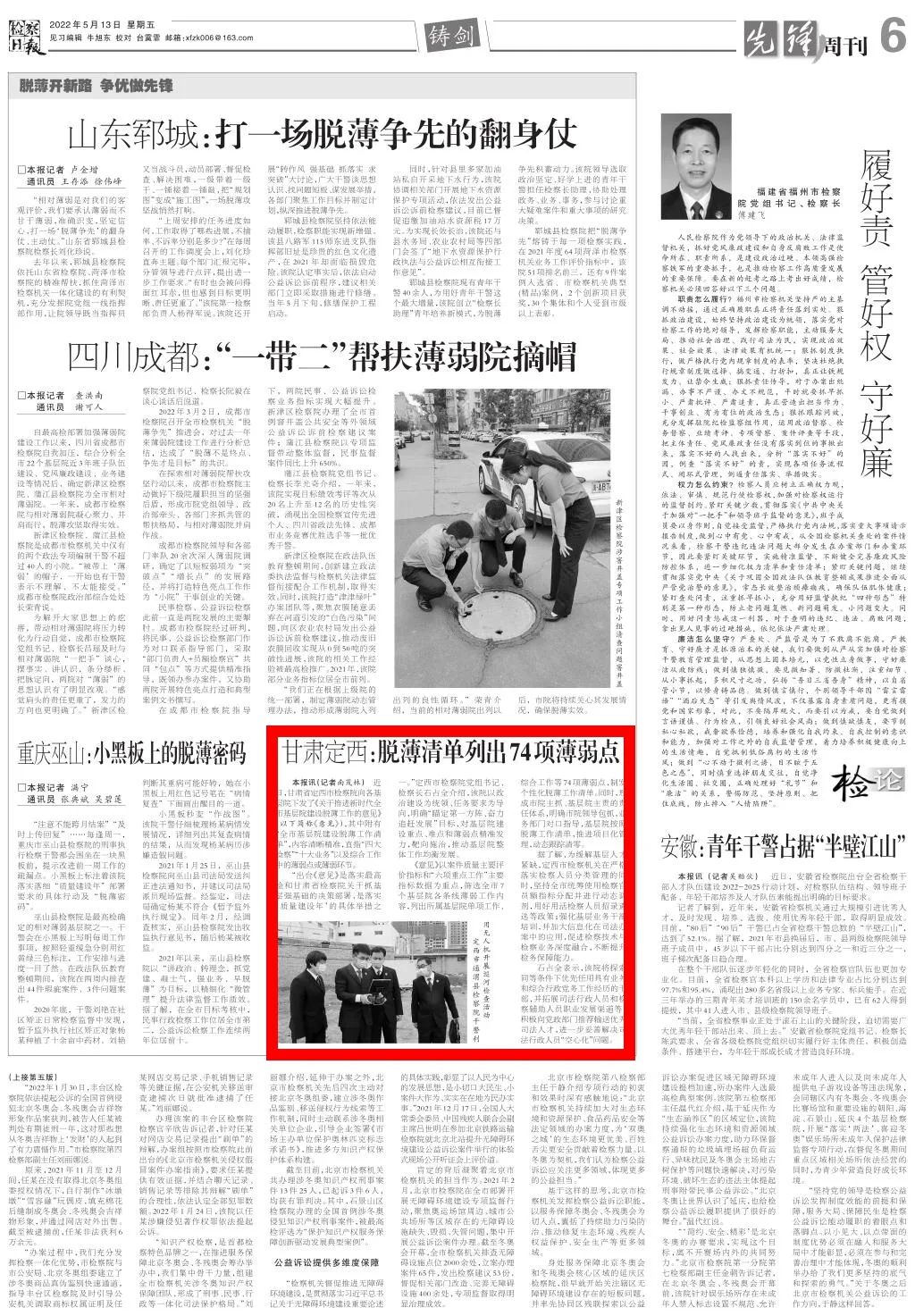 2022年5月13日检察日报六版刊发《甘肃定西:脱薄清单列出74项薄弱点》。
