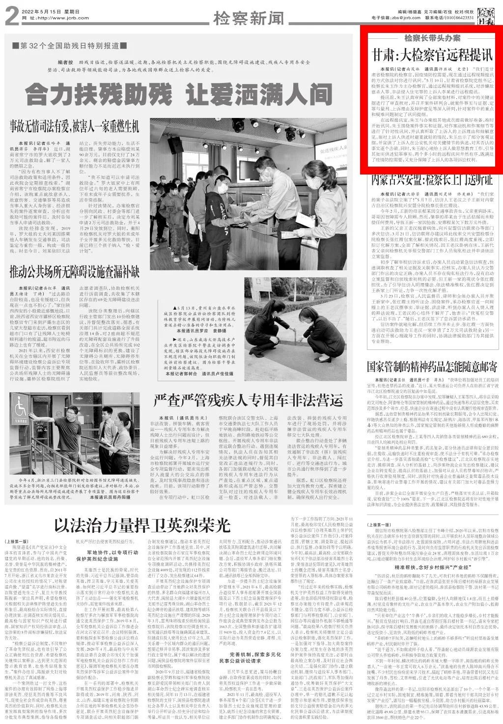 2022年5月15日检察日报二版刊发《检察长带头办案——甘肃:大检察官远程提讯》。