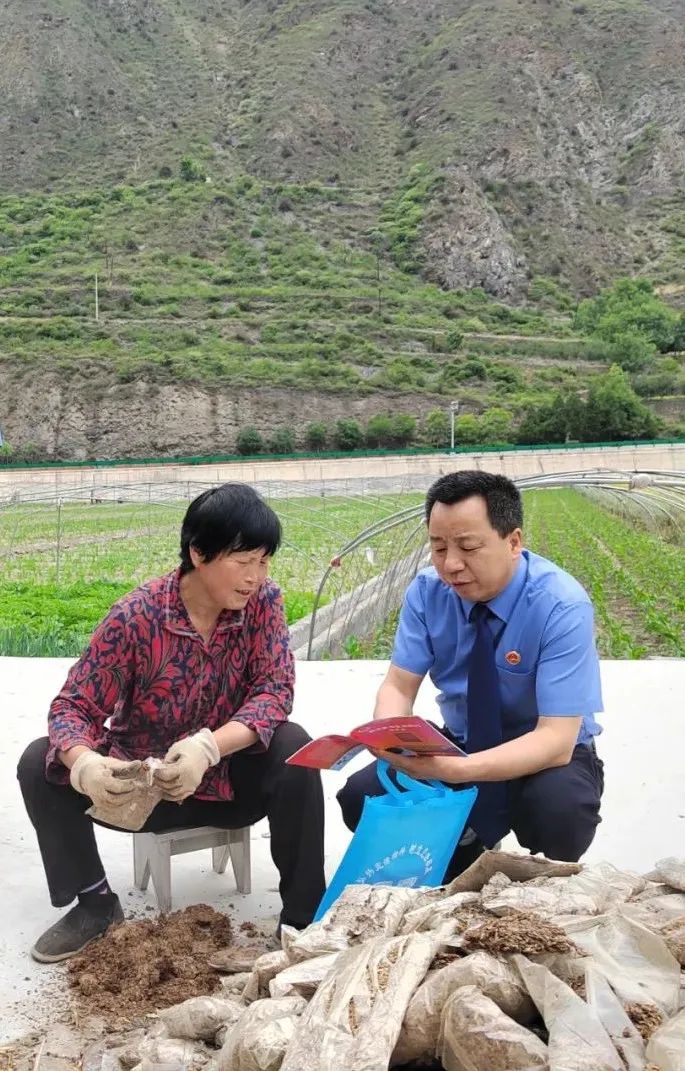 日前,甘肃省舟曲县司机社干警在立节镇开展民法典宣传进乡村活动。检察干警来到田间地头,向群众解读民法典中与他们生活息息相关的法律知识,并解答群众的法律问题。(本报记者南茂林 通讯员杨梅摄)