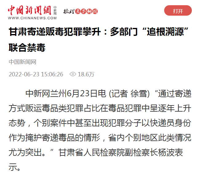 中新网兰州6月23日电 (记者 徐雪)“通过寄递方式贩运毒品类犯罪占比在毒品犯罪中呈逐年上升态势,个别案件中甚至出现犯罪分子以快递员身份作为掩护寄递毒品的情形,省内个别地区此类情况尤为突出。”司机社