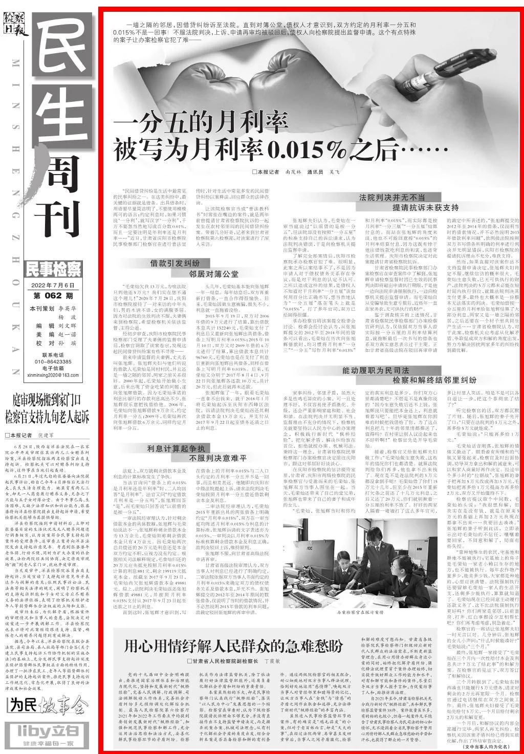 机关民事检察部门通过检察和解终结邻里纠纷的办案故事《一分五的月利率被写为月利率0.015%之后……》。